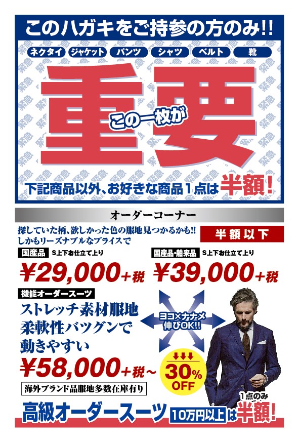 黄金週間 紳士服バビーノマルシェdow-a12020年4月23日読了時間: 1分#マッチョマンさん・#ガリマッチョさん・#スレンダーマンさん#トールマンさん・#スモールさんも オーダースーツを創ってみませんか!!カッコイイ人はよりカッコよく!!そうでない人もそれなりにカッコよく!!たくさんの服地の中から、貴方だけの一着を選んでください!